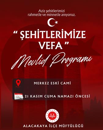 Bu vesileyle, aziz şehitlerimizin ve ebediyete intikal eden öğretmenlerimizin ruhlarına ithafen düzenleyeceğimiz Mevlid-i Şerif Programına tüm halkımız davetlidir.