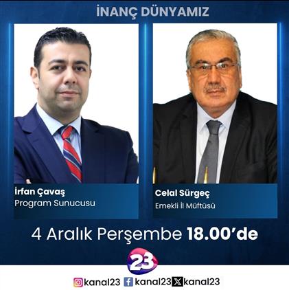 " *İNANÇ DÜNYAMIZ* " Programı 04 Aralık Perşembe günü saat 18:00’de KANAL 23 ekranlarında.