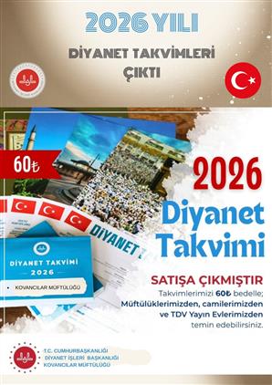 Not: Diyanet Takvimlerimizi tüm camilerimizden ve müftülüğümüzden temin edebilirsiniz.