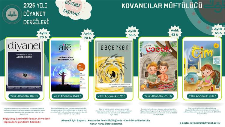 Kovancılar İlçe Müftülüğümüz tarafından 2026 yılı Diyanet dergi abonelikleri için başvurular alınmaya başlandı.