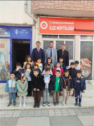 Türkiye Diyanet Vakfı Kovancılar Şubesi adına Filistin’e göndermek üzere kumbaralarını miniklerden teslim alan İlçe Müftümüz İrfan ÇAVAŞ, örnek davranışlarından dolayı minik öğrencileri ve kampanyaya vesile olan Kur'an kursu öğreticisi hocalarımızı tebrik etti.