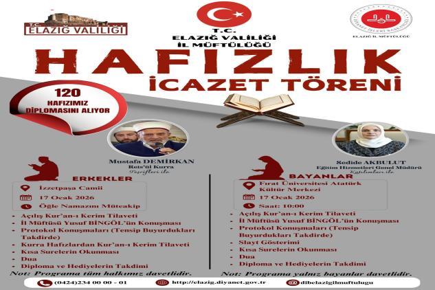HAFIZLIK İCAZET TÖRENİ “Kur’an’la Şereflenen Bu Güne Tüm Halkımız Davetlidir..’’